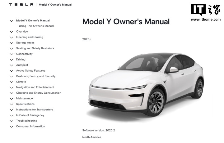 目前,消费者可以在特斯拉官方网站上查看新款ModelY的完整车主手册。不过,旧款ModelY车主手册的链接页面在IT之家撰写本文时似乎无法访问。